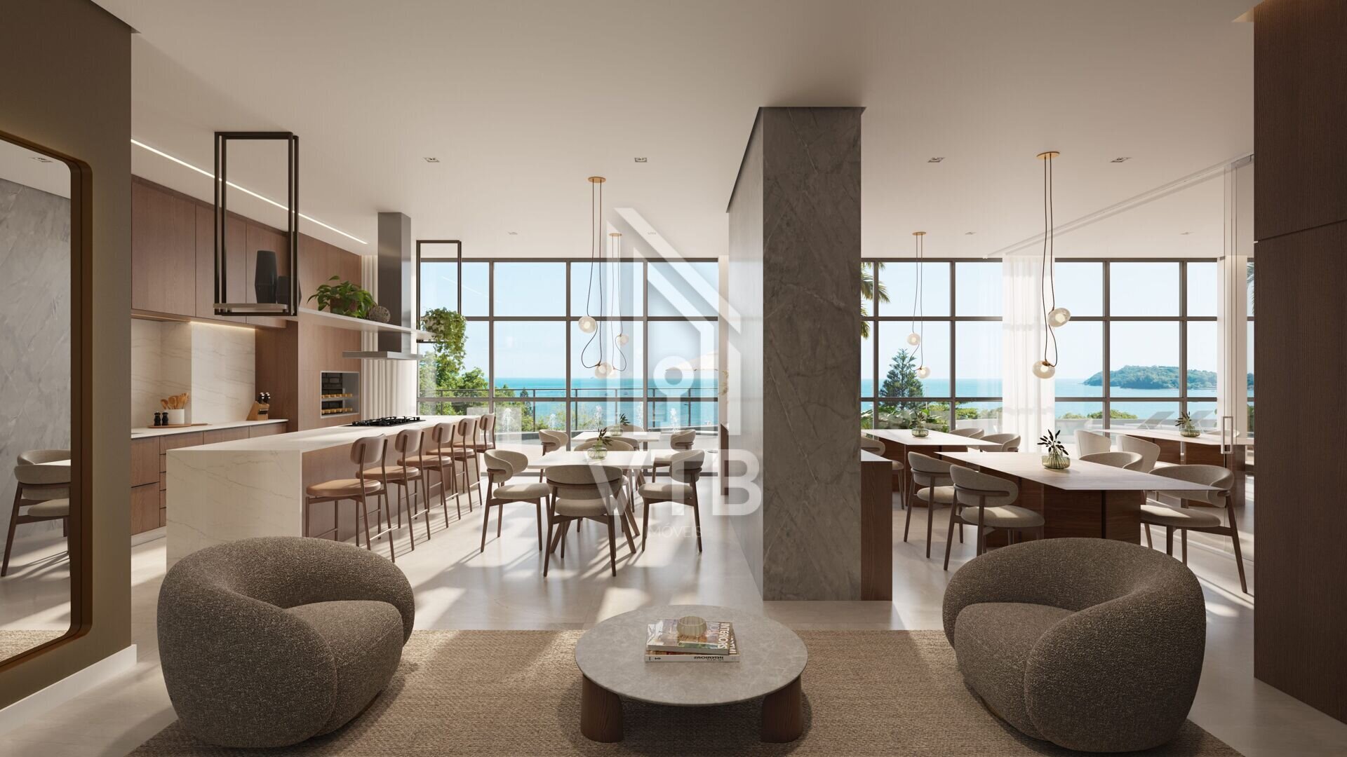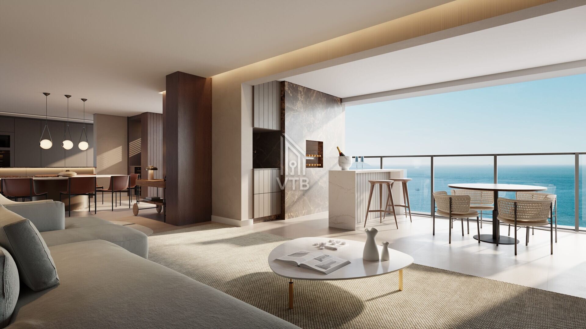 | Ambientes integrados com vista panorâmica do oceano | |