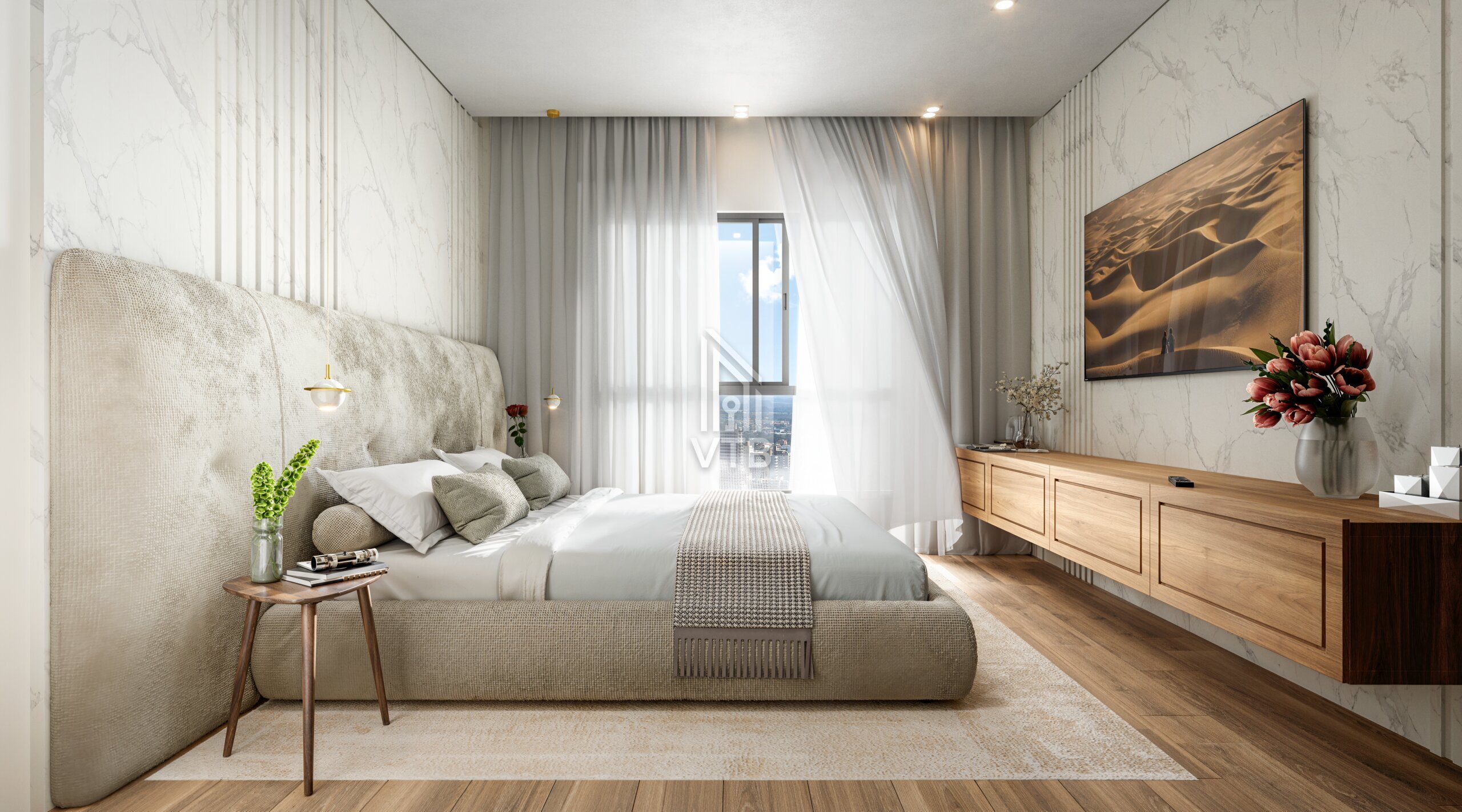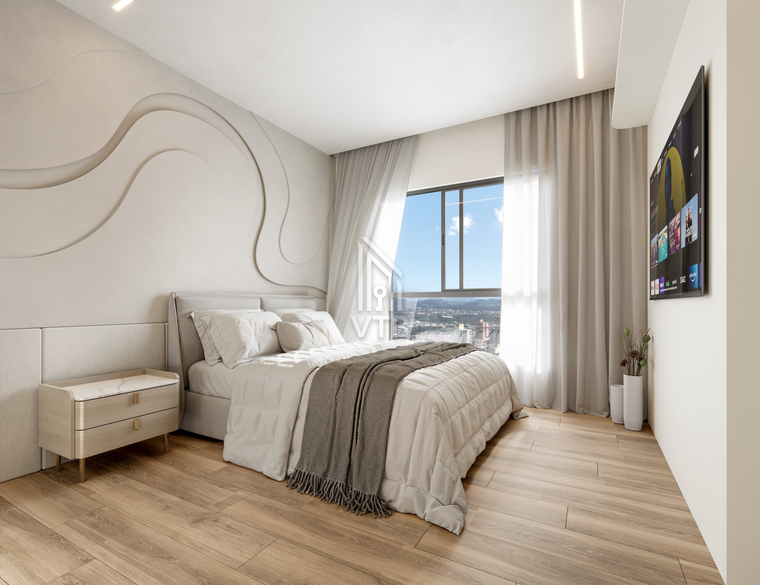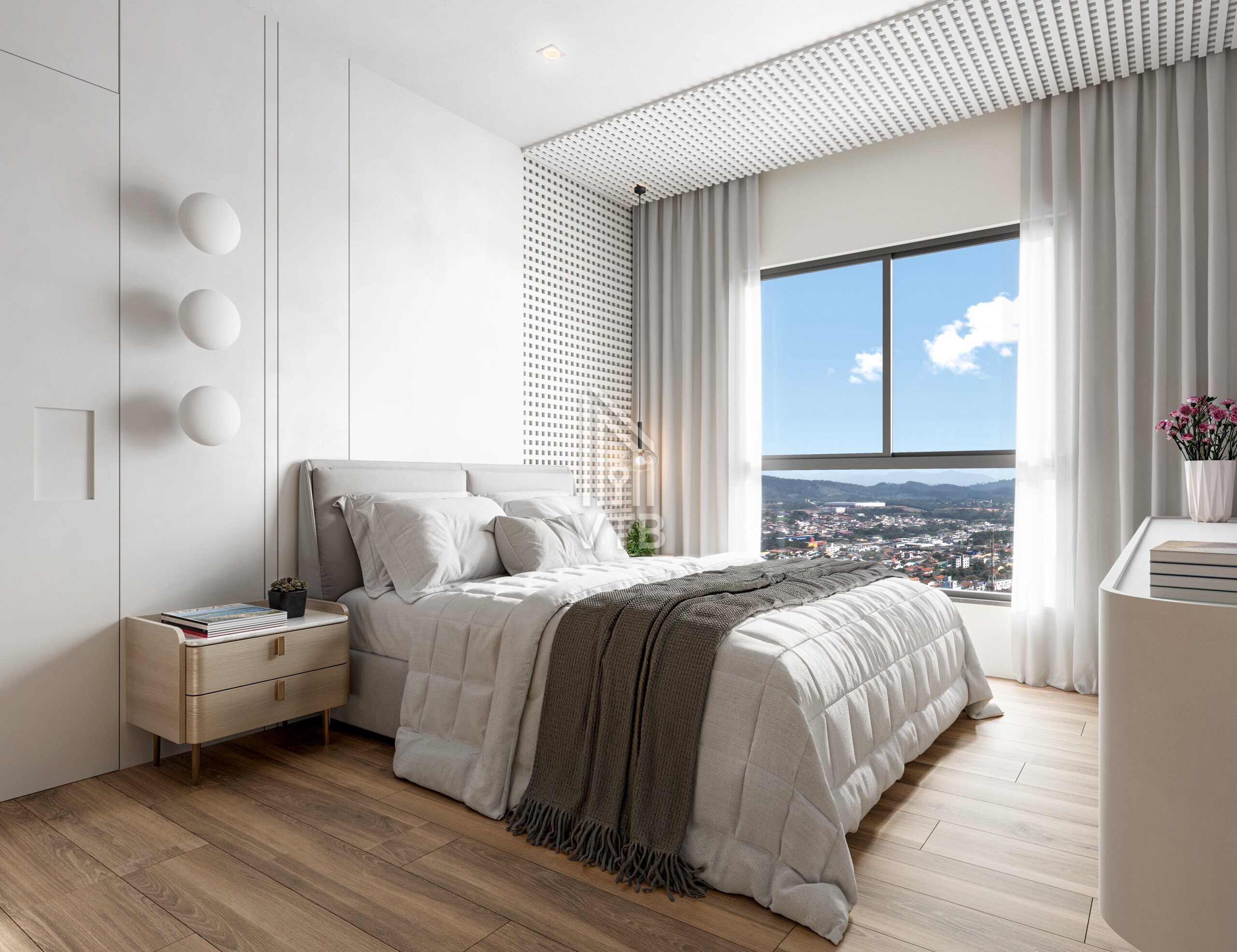 • Piso vinílico nas áreas íntimas e porcelanato nas áreas sociais